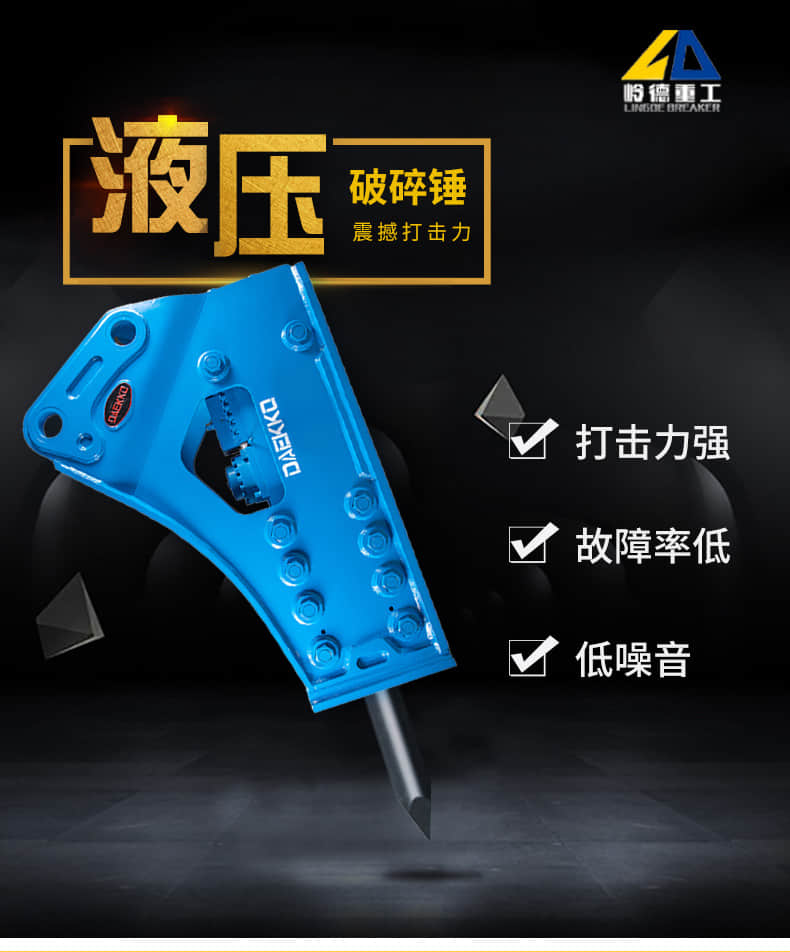 液壓破碎錘簡稱\\\\\\\"破碎錘\\\\\\\"或\\\\\\\"破碎器\\\\\\\",液壓破碎錘的動力來源是挖掘機、裝載機或泵站提供的壓力,它能在工程施工中能更有效的破碎石塊和巖石,提高工作效率。選用液壓破碎錘的原則是根據(jù)挖掘機型號、作業(yè)的環(huán)境來選擇適合的液壓破碎錘。